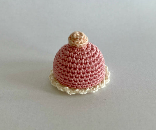 Miniatyr – Virkad prinsesstårta, rosa eller grön till dockhuset, tårta till Mailegs möss