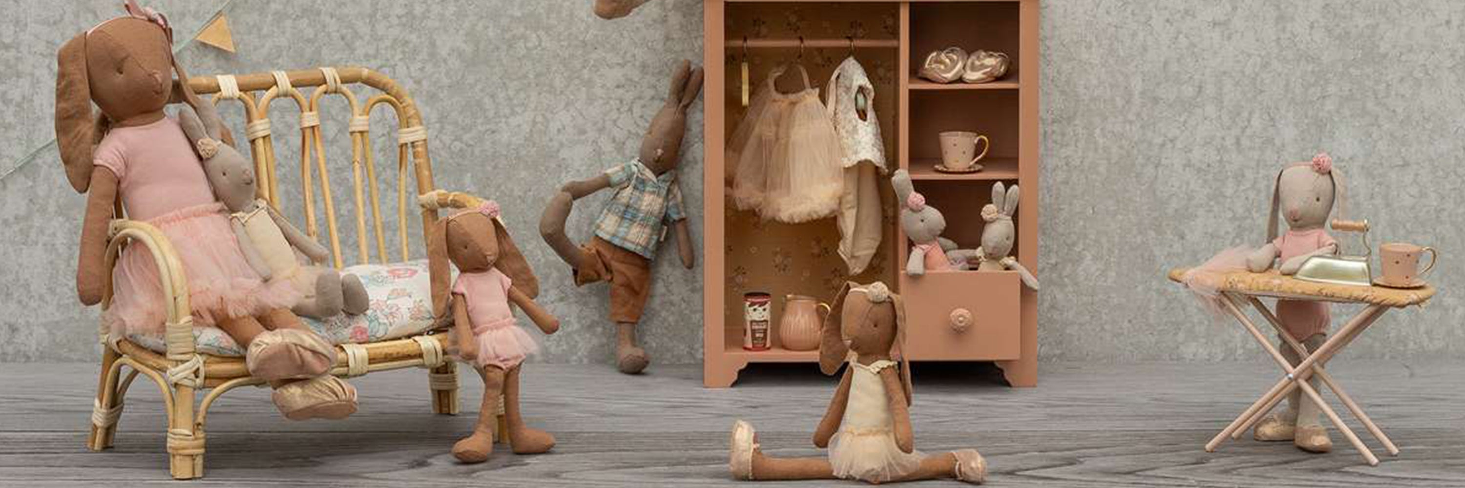 Sängar, soffor, bord och stolar. Här hittar du möbler till ditt Maileg hus eller dockskåp.