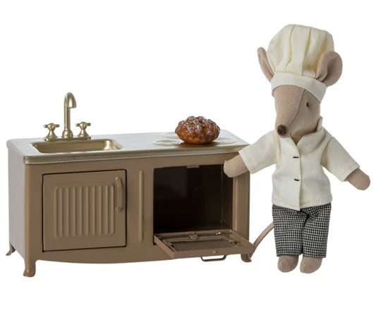 Maileg – Kök till mus i brun metall, kökshandfat, spis och ugn med bröd till möss