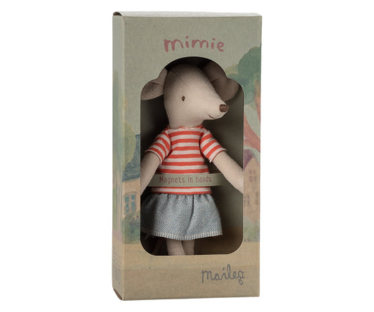 Maileg – Storasyster mus, LouiMax systermus Mimie med randig röd vit tröja och blå kjol