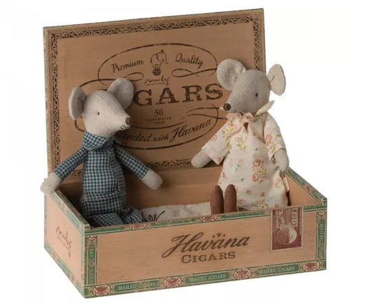 Maileg – Mormor och morfar mus i cigarrask, möss i cigarrlåda