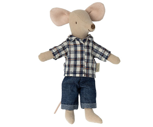 Maileg – Kläder till pappa mus, rutig skjorta och byxor, jeans