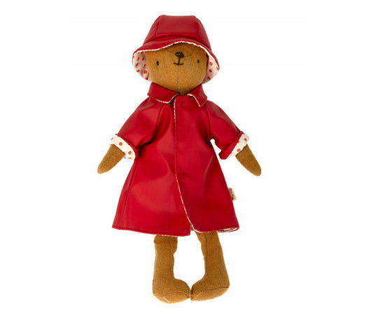 Maileg – Regnkläder till teddy mamma med hatt, kappa / jacka, kläder för björn, rött regnset