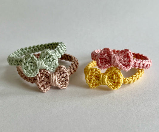 Miniatyr – Virkat hårband till storasyster mus med rosett, finns i flera olika färger