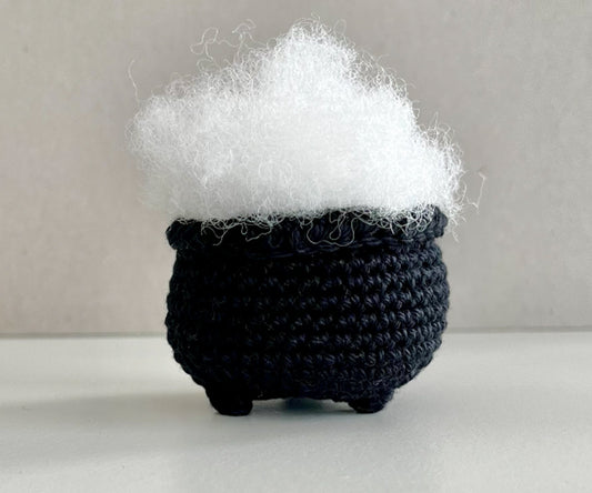 Miniatyr – Virkad kittel med häxbrygd i svart, prydnad till dockhuset för Halloween