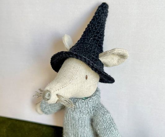 Tillfälligt slut i lagerMiniatyr – Virkad häxhatt i svart, hatt för möss till Halloween, trollkarlshatt