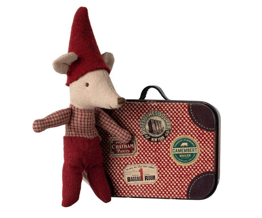 Tillfälligt slut i lagerMaileg – Vinter babymus i resväska, julmus baby i väska, vintermus med tomteluva
