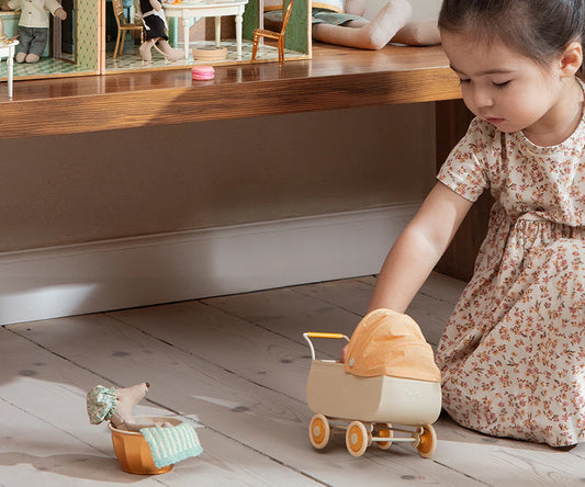 Maileg är ett danskt märke som designar och skapar charmiga leksaker, barnkläder och barnrumsinredning för små och stora barn. Leksakerna är som skapade för att inspirera våra barn och låta fantasin få flöda i deras favoritlekar. I Mailegs värld får tändsticksaskar vara sängar för möss, kaniner får bo i hus och möss i slott. Grisar, pandor, dinosaurier och igelkottar blir kramgoa vänner och i Mailegs värld är katter och möss alltid bästa vänner. Maileg är en värld fylld av barndomens fantasi – och det är en värld som värderas högt. Med Mailegs leksaker kan barn få utforska sin fantasi. Mailegs leksaker är älskade för sina hjärtevärmande personligheter och dem visar lekfullhet och charm in i minsta detalj. Mailegs produkter skapar en tidlös värld fylld med vackra tillbehör som kan delas med vänner och familj i flera generationer.