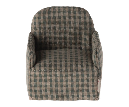 Maileg – Rutig fåtölj i miniatyr till möss, stol grön och vit rutig
