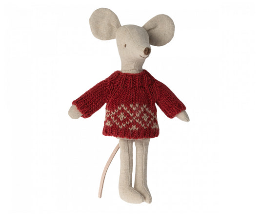 Maileg – Stickad tröja, kläder för mamma mus, virkad röd kofta jul