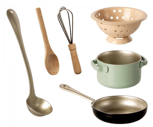 Maileg – Stove with kitchen utensils, accessories, cooking set