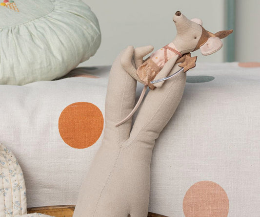 Maileg – Tandfe i påse, lillasyster mus, prickig med mössa (slutsåld kollektion)