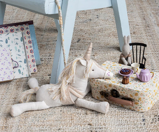 Maileg – Enhörning med horn och sadel, unicorn i storlek medium