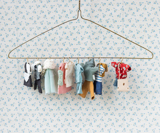 Maileg – Guldiga galgar för kläder, hängare miniatyr, tre st
