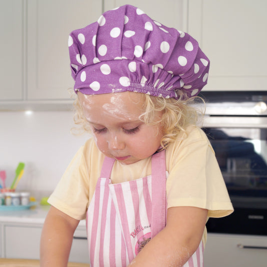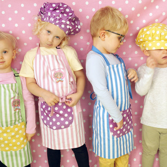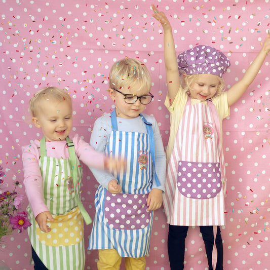 Bake with Alma - Apron, striped pink and white with purple pocket
