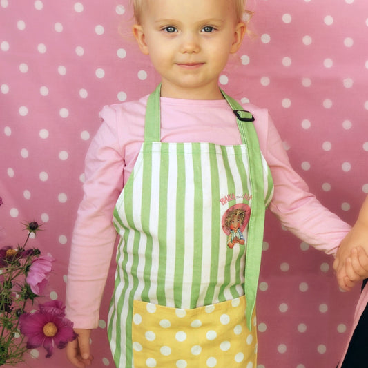 Bake with Alma – Apron, striped green and white with yellow pocket