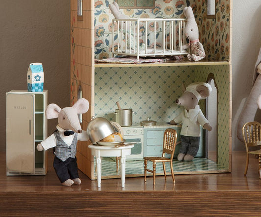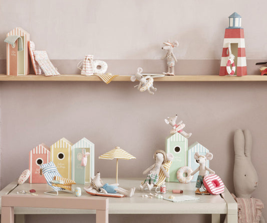 Maileg is a Danish brand that designs and creates charming toys, children's clothing and children's room decor for small and large children. The toys are designed to inspire our children and let their imagination run wild in their favorite games. In Maileg's world, matchboxes can be beds for mice, rabbits can live in houses and mice in castles. Pigs, pandas, dinosaurs and hedgehogs become huggable friends and in Maileg's world cats and mice are always best friends. Maileg is a world filled with childhood imagination – and it is a world that is highly valued. With Maileg's toys, children can explore their imagination. Maileg toys are loved for their heartwarming personalities and they show playfulness and charm in every detail. Maileg's products create a timeless world filled with beautiful accessories that can be shared with friends and family for generations.