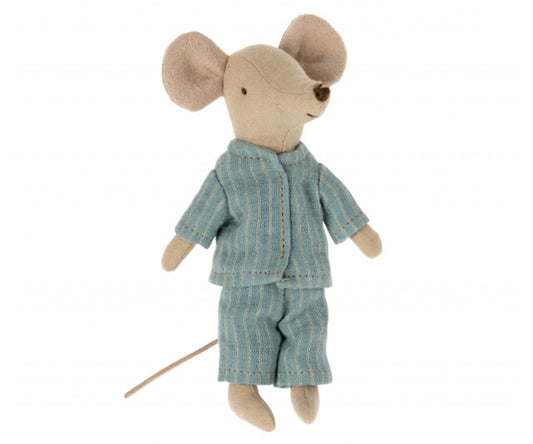 Maileg – Pyjamas med blå och vit randig skjorta och byxa, storebror mus