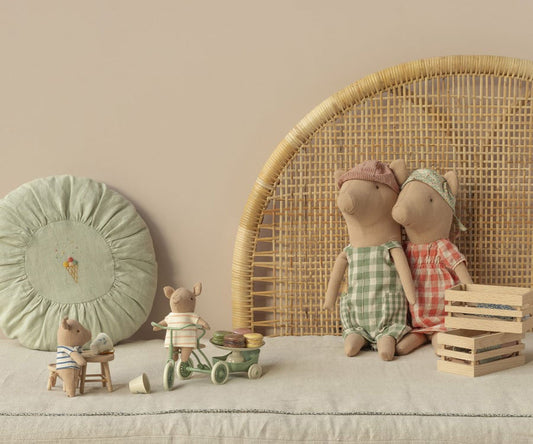 Maileg is a Danish brand that designs and creates charming toys, children's clothing and children's room decor for small and large children. The toys are designed to inspire our children and let their imagination run wild in their favorite games. In Maileg's world, matchboxes can be beds for mice, rabbits can live in houses and mice in castles. Pigs, pandas, dinosaurs and hedgehogs become huggable friends and in Maileg's world cats and mice are always best friends. Maileg is a world filled with childhood imagination – and it is a world that is highly valued. With Maileg's toys, children can explore their imagination. Maileg toys are loved for their heartwarming personalities and they show playfulness and charm in every detail. Maileg's products create a timeless world filled with beautiful accessories that can be shared with friends and family for generations.