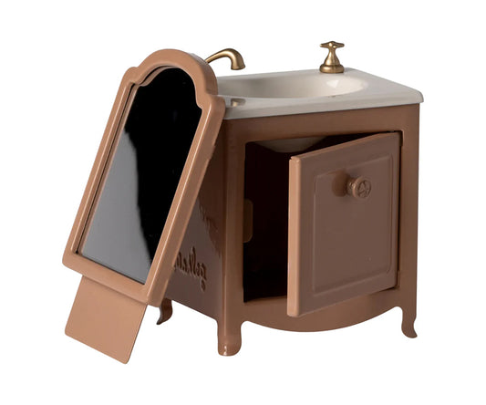 Maileg – Litet handfat för möss i vintage stil, vit med guldig kran