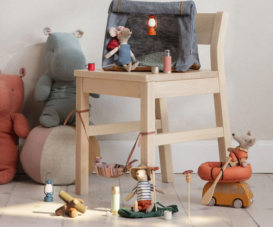 Maileg is a Danish brand that designs and creates charming toys, children's clothing and children's room decor for small and large children. The toys are designed to inspire our children and let their imagination run wild in their favorite games. In Maileg's world, matchboxes can be beds for mice, rabbits can live in houses and mice in castles. Pigs, pandas, dinosaurs and hedgehogs become huggable friends and in Maileg's world cats and mice are always best friends. Maileg is a world filled with childhood imagination – and it is a world that is highly valued. With Maileg's toys, children can explore their imagination. Maileg toys are loved for their heartwarming personalities and they show playfulness and charm in every detail. Maileg's products create a timeless world filled with beautiful accessories that can be shared with friends and family for generations.