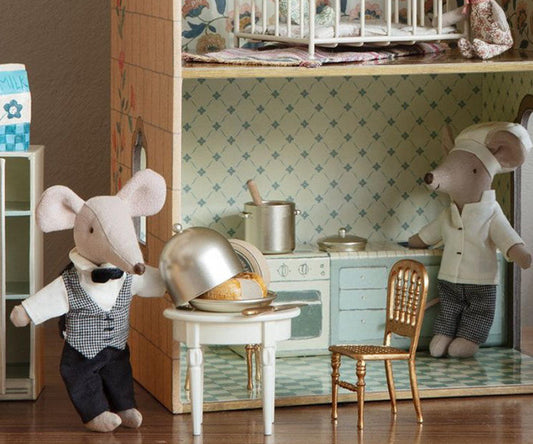 Maileg is a Danish brand that designs and creates charming toys, children's clothing and children's room decor for small and large children. The toys are designed to inspire our children and let their imagination run wild in their favorite games. In Maileg's world, matchboxes can be beds for mice, rabbits can live in houses and mice in castles. Pigs, pandas, dinosaurs and hedgehogs become huggable friends and in Maileg's world cats and mice are always best friends. Maileg is a world filled with childhood imagination – and it is a world that is highly valued. With Maileg's toys, children can explore their imagination. Maileg toys are loved for their heartwarming personalities and they show playfulness and charm in every detail. Maileg's products create a timeless world filled with beautiful accessories that can be shared with friends and family for generations.