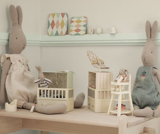 Maileg – Barnstol micro för kaniner, vit stol i trä för babykanin