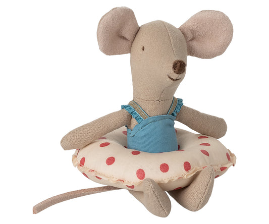 Maileg – Lillasyster badmus med blå baddräkt och prickig badring