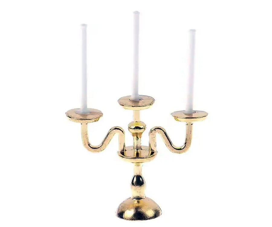 En vacker och ståtlig ljusstake / ljuskrona med ljus i miniatyr som passar perfekt till dockhus eller tittskåpet. Vacker ljushållare med tre värmeljus för att ge en fin och klassisk känsla. Denna fina dekoration förgyller varje dockskåp. Inred med denna ljusstake i ditt dockskåp och låt dina dockor, Maileg möss eller kaniner mysa framför den. Placera den på soffbordet, köksbordet eller i en hylla för att skapa en fin inredningsdetalj till ditt dockhus.