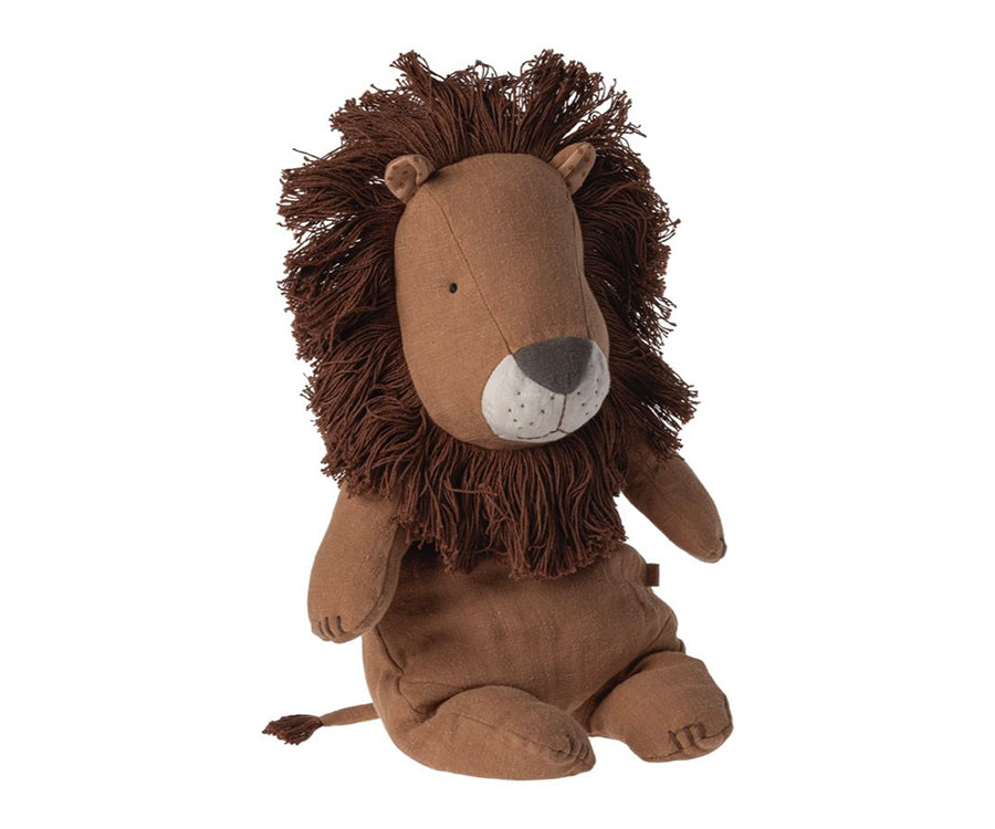 Gosigaste och sötaste lejonet, ett gosedjur i mjukaste linne i färgen brun med mörkbrun lejonman. Lejonet kan sitta själv och ger världens mjukaste kramar. En perfekt vän till vaggvisan eller godnattsagan. Safarivänner från Maileg är en samling vackra föremål och mjukisdjur för barn. Lejonet är den nya vännen i samlingen Safarivänner från kollektionen FW24.