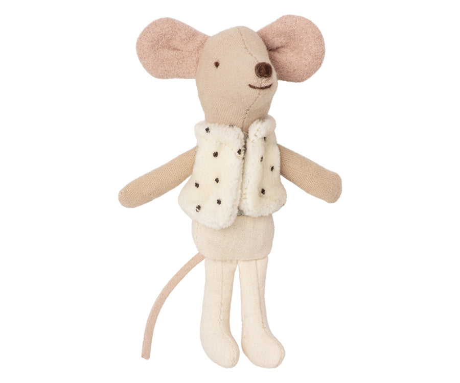 Slutsåld kollektion, endast 1 st i lager. En vacker liten bror dansmus i fin liten ask. Denna balett mus har en vacker väst och kommer i fin ask, han tillhör kollektionen med dansmöss från Maileg. Köp denna fina lilla mus dansör och låt den bli en självklar stjärna i din samling. Låt dansen börja! Denna fina mus har utgått från Mailegs sortiment, så köp ditt exemplar innan det är försent!