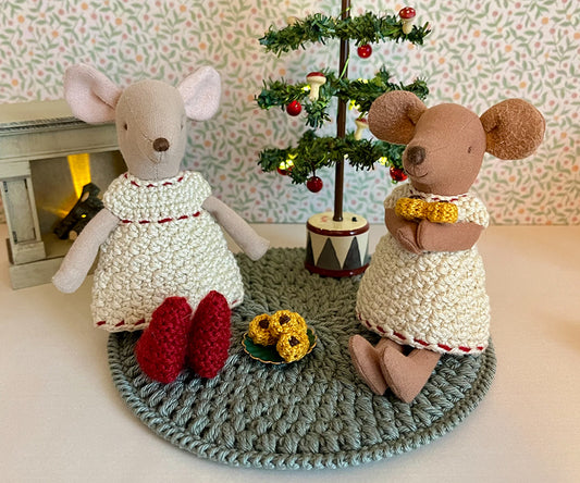 Maileg – Stickad tröja och mössa, virkade kläder för mamma mus i jul