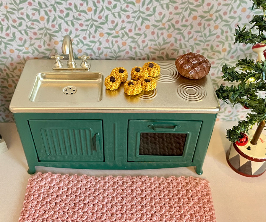 Miniatyr – Virkad lussebulle, gul lussekatt med russin till dockhuset, 1-pack