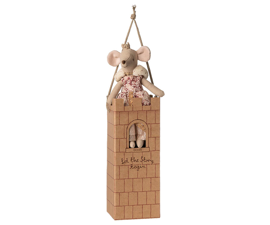 Äntligen är mamma mus som drottning tillbaka i nya kläder! Drottningenmus i storlek Mamma är redo att vara värdinna i sitt slott. Hon bär en vacker kunglig klänning och krona och passar perfekt in i slottssalen.